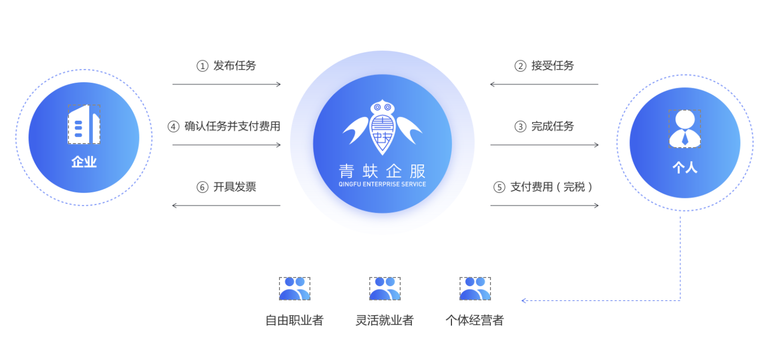 企业在给灵活就业人员进行费用结算时, 企业无法取得进项发票,灵活就业个人缴税及完税困难,相信未来可为灵活就业人员一键批量支付,并依法为个人报税及完税,并为企业真实业务合规开具增值税专用发票。
